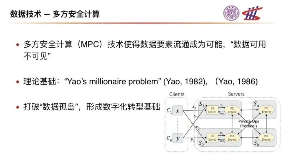 多方安全計(jì)算(MPC)技術(shù)使得數(shù)據(jù)要素流通成為可能,“數(shù)據(jù)可用不可見(jiàn)”,利用這項(xiàng)技術(shù),可以打破“數(shù)據(jù)孤島”,形成數(shù)字化轉(zhuǎn)型基礎(chǔ)。