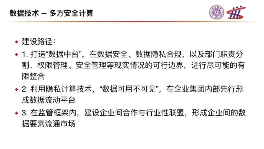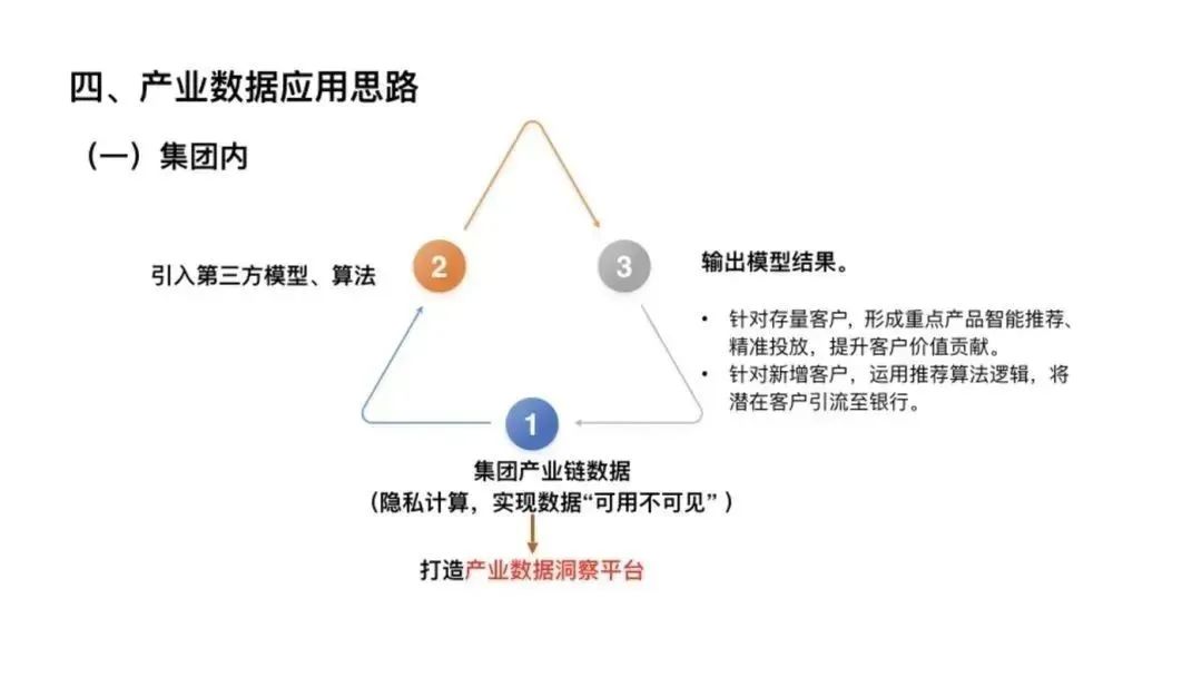 2. 利用隱私計(jì)算技術(shù),“數(shù)據(jù)可用不可見(jiàn)”,在多企業(yè)集團(tuán)內(nèi)部先行形成數(shù)據(jù)流動(dòng)平臺(tái);