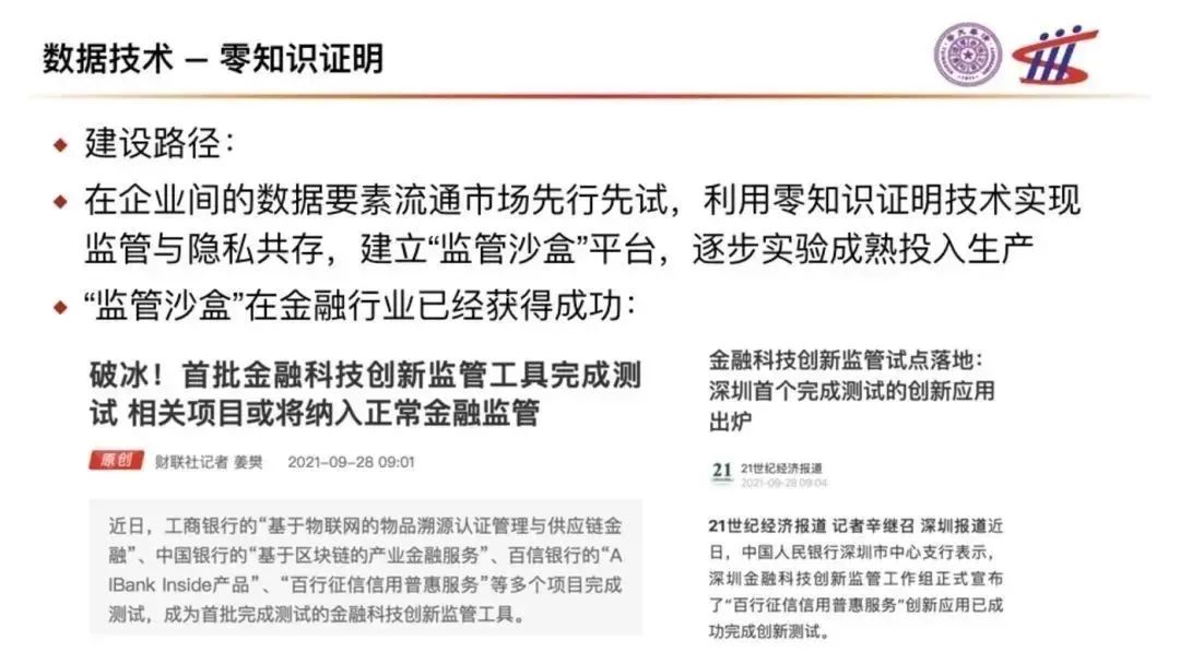 在企業(yè)間的數(shù)據(jù)要素流通市場(chǎng)先行先試,利用零知識(shí)證明技術(shù)實(shí)現(xiàn)監(jiān)管與隱私共存,建立“監(jiān)管沙盒”平臺(tái),逐步實(shí)驗(yàn)成熟投入生產(chǎn)。