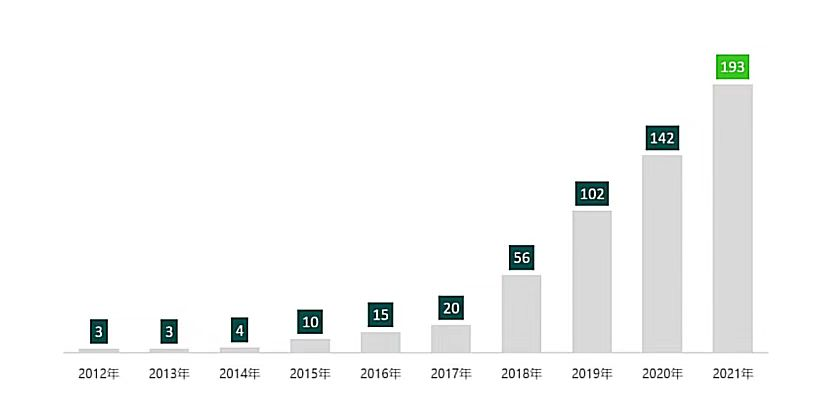 中國歷年地級及以上政府數(shù)據(jù)開放平臺數(shù)量增長情況
