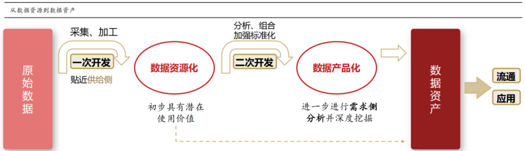 我們認為將原始數據轉化為數據資產主要需要經過數據資源化、數據產品化兩個階段。