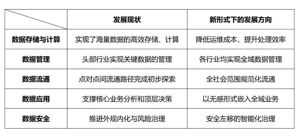 這五大核心領(lǐng)域由于發(fā)展起步時間不同、應(yīng)用需求緊迫程度不同等原因,發(fā)展模式存在差異。在當前數(shù)據(jù)成為生產(chǎn)要素并快速融入生產(chǎn)、分配、流通、消費等各環(huán)節(jié)的新形勢下,大數(shù)據(jù)五大核心領(lǐng)域的發(fā)展方向均進一步明確。