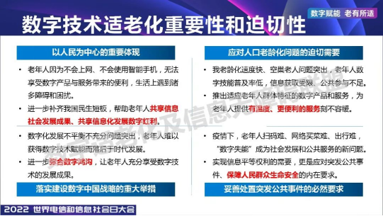 2022年5月17日,在“世界電信和信息社會日大會”上,由中國信息通信研究院牽頭的“數(shù)字適老化及信息無障礙聯(lián)盟”宣布成立,并發(fā)布《數(shù)字技術(shù)適老化發(fā)展報告(2022年)》。