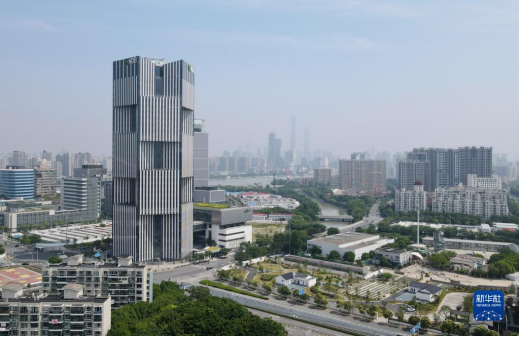 圖片位于上海浦東新區(qū)世博園區(qū)的金磚國(guó)家新開發(fā)銀行總部大樓(2022年6月17日攝,無人機(jī)照片)
