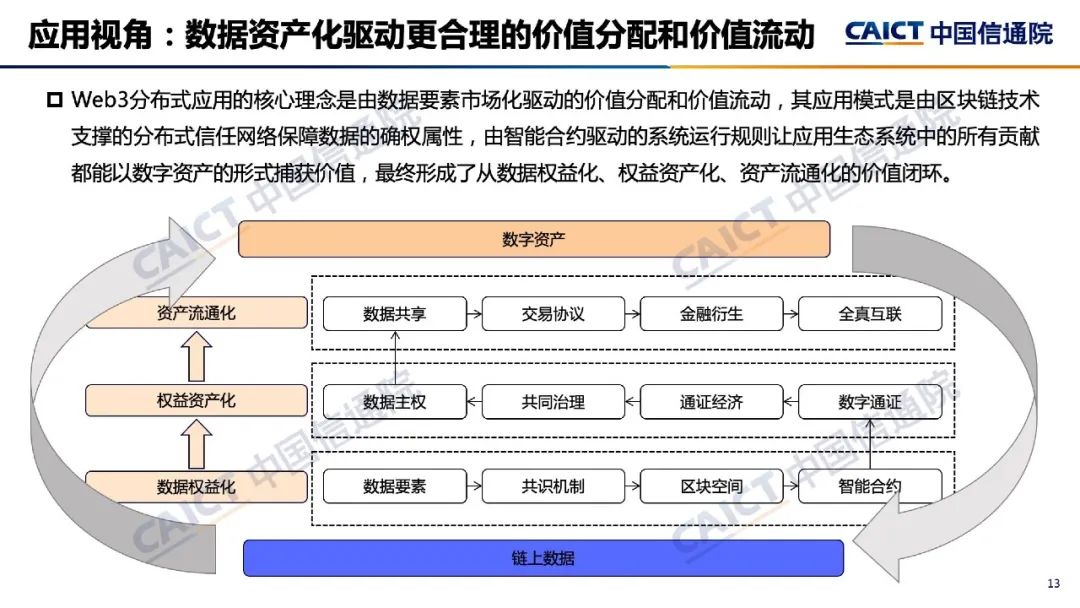 1. Web3不只是互聯(lián)網(wǎng)應用層的簡單創(chuàng)新,可能會帶來互聯(lián)網(wǎng)體系架構整體性演進和系統(tǒng)性升級。Web3是在區(qū)塊鏈等技術出現(xiàn)后的下一代互聯(lián)網(wǎng)框架探索,通過共識協(xié)議、加密通信、智能合約、分布式應用等創(chuàng)新設計,重構互聯(lián)網(wǎng)應用生態(tài),進一步發(fā)揮數(shù)據(jù)要素價值。但Web3仍處于發(fā)展初期,技術與產(chǎn)業(yè)的定義尚未完全固定,發(fā)展路徑存在不確定性。2. 在技術視角,Web3初步形成“四層兩化”的基本框架。其中,設施層基本復用了現(xiàn)有承載網(wǎng)絡,基礎層主要是基于區(qū)塊鏈技術構建去中心化的信任網(wǎng)絡,擴展層通過“胖協(xié)議?!痹O計來豐富共性服務,為應用層提供更多能力支持。同時,Web3通過數(shù)字對象資產(chǎn)化為數(shù)據(jù)要素的市場化流通和配置提供技術賦能,通過數(shù)字身份標識化為全網(wǎng)統(tǒng)一的數(shù)字身份和分布式的細粒度認證提供實現(xiàn)機制。3. 在開發(fā)視角,Web3通過五類工程要素組成分布式應用的開發(fā)框架。其中,基礎設施是由多個區(qū)塊鏈系統(tǒng)組成的分布式底層網(wǎng)絡;組件工具是上層應用與底層基礎設施交互的橋梁;交互界面是Web3應用的呈現(xiàn)方式,通過前端框架實現(xiàn);用戶入口是進入生態(tài)的起點,通過數(shù)字錢包進行身份簽名認證并與應用進行交互;部署環(huán)境是代碼托管和內(nèi)容存儲環(huán)境,用于其他組件部署和運行。4. 在部署視角,Web3將構建數(shù)據(jù)驅(qū)動、自主管理、分布互聯(lián)、安全可信的新一代互聯(lián)網(wǎng)。在計算方面,對網(wǎng)絡帶來新的算力需求、計算調(diào)度、算網(wǎng)協(xié)同;在存儲方面,逐步構建數(shù)字資產(chǎn)激勵下的分布式網(wǎng)絡存儲設施;在通信方面,數(shù)字身份等技術將推動網(wǎng)絡內(nèi)生的安全通信。5. 在應用視角,Web3分布式應用的核心理念是由數(shù)據(jù)驅(qū)動的價值分配和價值流動。Web3應用的基本模式是由區(qū)塊鏈技術支撐的分布式網(wǎng)絡來保障數(shù)據(jù)的確權屬性,由智能合約驅(qū)動自治的運行規(guī)則來讓應用生態(tài)中的所有數(shù)據(jù)貢獻都能以數(shù)字資產(chǎn)的形式捕獲價值,并最終形成從數(shù)據(jù)權益化、權益資產(chǎn)化到資產(chǎn)流通化的價值閉環(huán)。