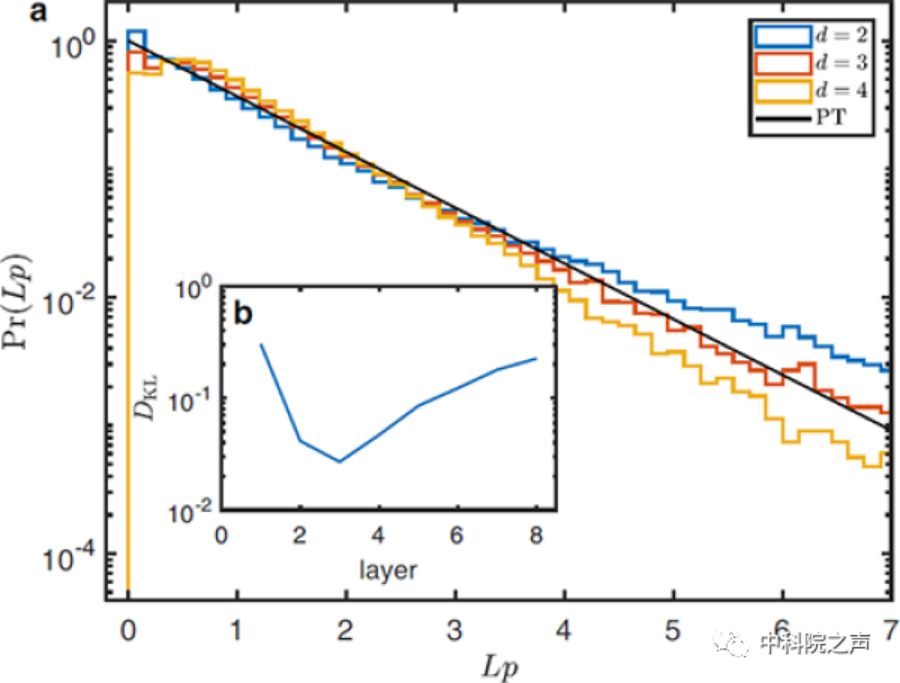 該團隊通過基于全連通芯片上特有的全局糾纏邏輯門以及隨機單比特邏輯門所構(gòu)建的偽隨機線路來實現(xiàn)隨機量子態(tài)的制備。由于這種全局糾纏門具有較強的糾纏能力,實驗上通過較淺的偽隨機線路就可以制備出包含最多15個比特的隨機態(tài),進而采用量子態(tài)層析法獲得6比特的密度矩陣,實驗上便得到待研究系統(tǒng)不同組分間的糾纏負度譜和對數(shù)負度。實驗數(shù)據(jù)表明,糾纏負度譜的分布會隨著環(huán)境和系統(tǒng)的大小而變化,實現(xiàn)了從無糾纏相,到最大糾纏相和糾纏飽和相三種不同的糾纏特征,從而實現(xiàn)了糾纏相變的觀測。其中,最大糾纏相和糾纏飽和相可以利用對數(shù)負度的行為來區(qū)分。在特定的環(huán)境大小下,系統(tǒng)間的糾纏滿足Page提出的體積律即是最大糾纏相,而在子系統(tǒng)不同劃分下,對數(shù)負度達到一定值后飽和則為糾纏飽和相。同時,為了確認所用線路的隨機性,實驗采樣了多個隨機線路的字符串采樣輸出,并與隨機態(tài)所應(yīng)該滿足的Porter-Thomas分布進行對比,確認實驗中所實現(xiàn)的線路層數(shù)符合隨機態(tài)制備要求。